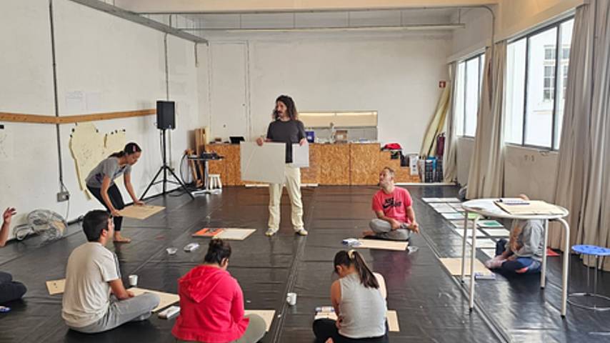 Os intérpretes da Companhia Dançando com a Diferença iniciaram hoje um novo processo de trabalho com o artista e curador Luís Guerra, no estúdio da Dançando com a Diferença.